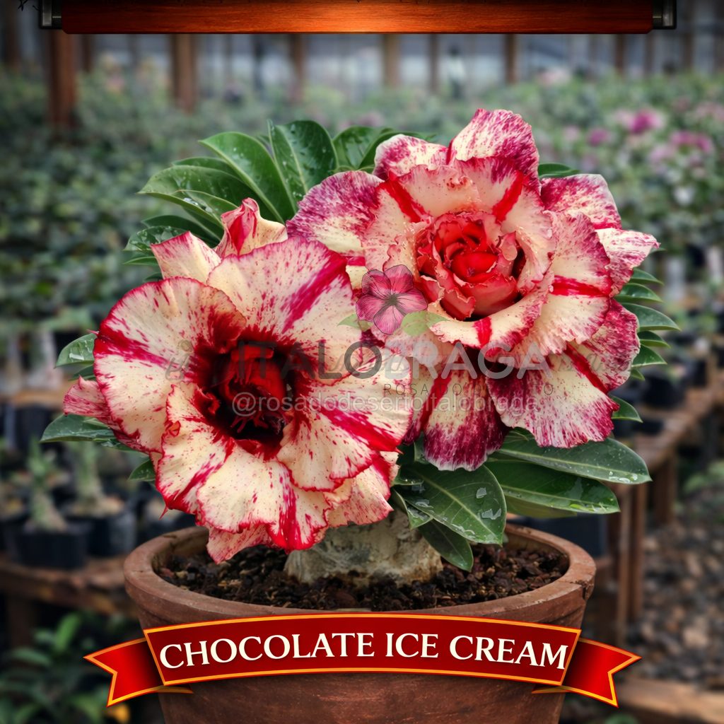 01 Rosa do Deserto Enxertada CHOCOLATE ICE CREAM RC-192 – Flor Rara Planta Ornamental