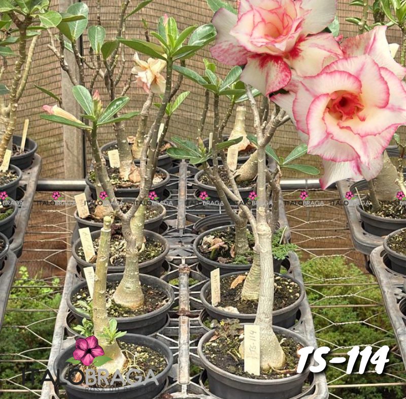 01 Muda Rosa do Deserto enxertada Vermelho com branco Top Tripla (TS-114), cor igual foto do anuncio.